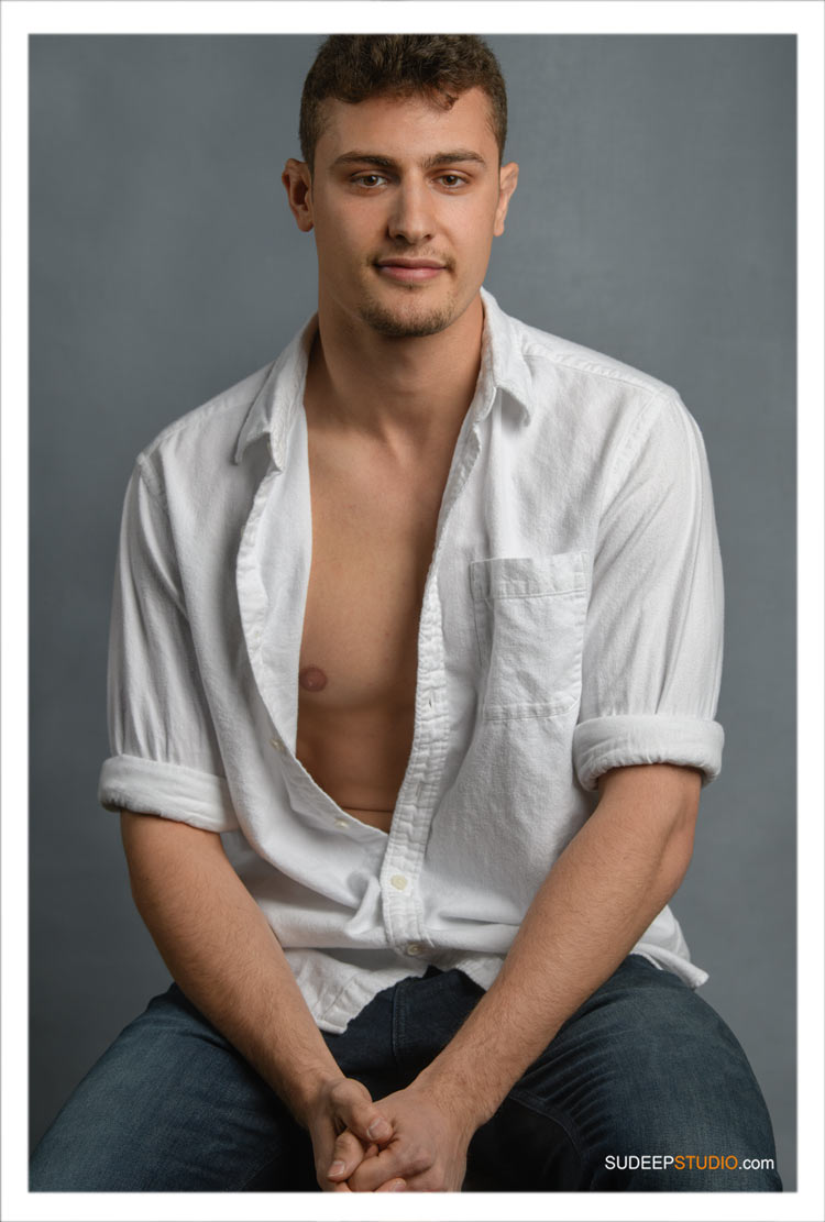 Professional Model Portrait Photography for male fitness model portfolio in Modern GQ fashion magazine style is always fun. Photos are created with professional lights, guided compositions, and advanced retouching in modern tones. Sudeep Studio Professional Model Portrait Photographer collaborates with the client to understand the "look" they want, and creates that best look in a natural way.